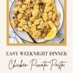Overhead shot of Chicken Piccata Pasta with radiatori in lemon butter sauce.