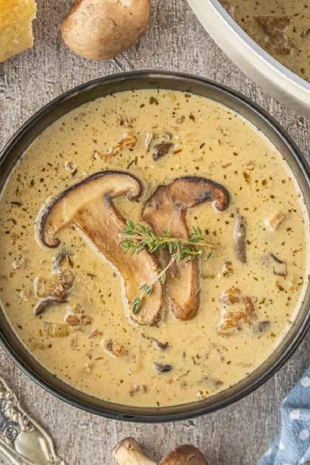 - Serve this creamy mushroom soup with a sprinkle of thyme leaves and a few reserved sautéed mushroom slices.